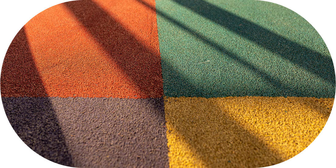 Основа как бесшовных покрытий, так и плитки (ковра) — резиновая крошка. Источником сырья, как правило, выступают переработанные резиновые покрышки. Получается двойная польза: и автомобильные шины утилизируются, и площадки покрываются мягким, упругим, долговечным материалом.